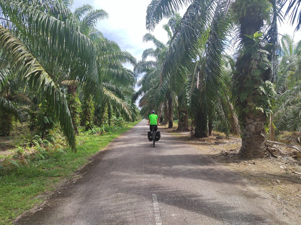 On the way out, some of KL had a bike lane, which was really pleasant. It was a Sunday, and lots of cyclists were out and about and stopped for a chat or just waved. And then, as we got towards the outskirts, there wasn’t a bike lane but a hellscape for cyclists. And like the circles of hell, the roads were all at different levels, so not only did we need to find a road going in the right direction, but one at the right level. However, once we got on the correct road out of the city, there was an entirely separate motorbike path running alongside an expressway. It ended at one point, disintegrating into roadworks and a jungle, leaving the expressway as the only road and clearly signposted as no bicycles or even motorbikes. A guy on a moped noticed our confusion and rode over to check we were okay and knew where to go, I told him where we were heading. “Follow me” he said and rode off onto a small piece of the expressway and then down a fenced off path and back onto a motorbike lane. He waved us on as he went his own way. We never would have found our way, it couldn’t be seen from where we were and wasn’t signposted.