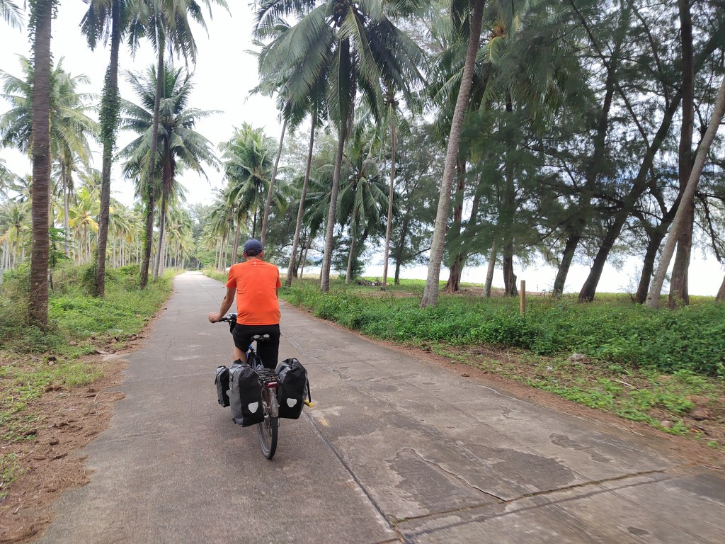 We stayed up a hill by a farm on the Malaysian side of the border. On the walk back from getting food in town, the biggest monitor lizard imaginable crashed out of the undergrowth ahead, desperate to get away from us. Now every time we’re riding and hear movement in the undergrowth beside us, I tense up at what might be in there. We spent a night of non-stop chicken squawks and apprehension about the border crossing, which by land are always fraught. Richard’s a worrier and we’re both organised, so we turned up with all our proofs of funds, lodging and all the paperwork in order when called into the immigration office. Having biometrics taken, getting a passport stamp and an “enjoy Thailand” was all that happened. Sod’s law says though that if we didn’t have everything we’d be asked for it.