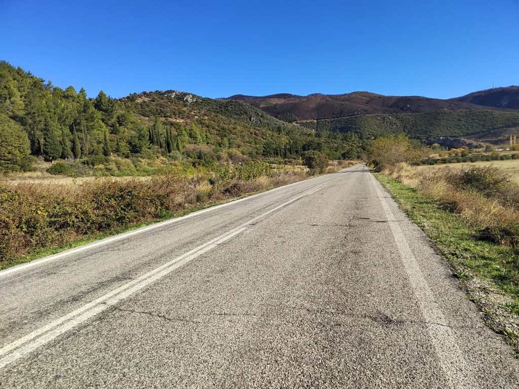We’re surrounded by the effects of the wildfires which swept through Greece in the summer, and in the region where most of the deaths occurred. The area is totally devastated, with whole swathes of the mountainside and olive groves all the way into the distance charred black. It’s sobering to think how frightening it would have been to be on a road like this, completely surrounded and nowhere near help.
