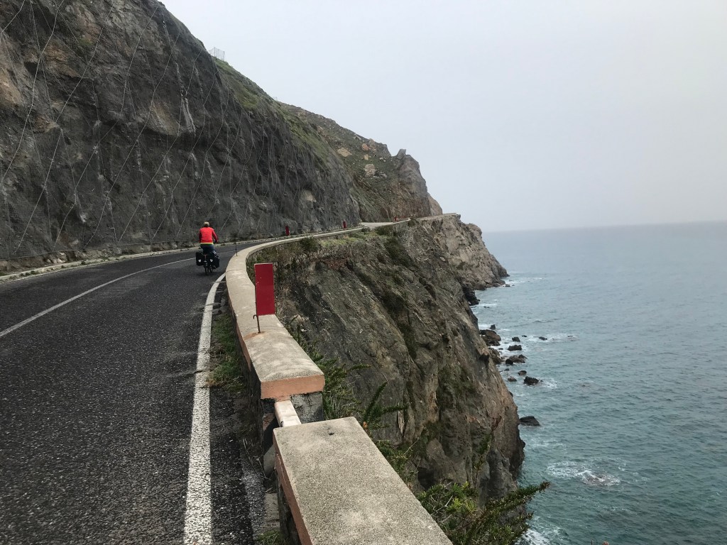 The following day the road is right beside the rugged coast, with steep drops shielded by crash barriers. It’s a dull day and the sea is an angry grey rather than the dreamy blue of yesterday, but we can’t have everything. The roads are narrow, but the drivers are tolerant of cyclists.