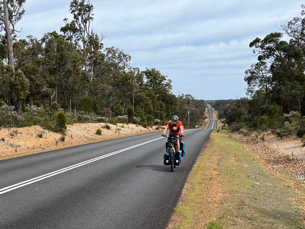 Later on, we meet one half of a couple of other cyclists. They have made the smart and enviable decision to rent a caravan rather than pitch up. We’re invited over after dinner, and sitting in the warmth with a mug of hot chocolate, we can talk road conditions, camping options and cycling, which is usually too boring for anyone else to listen to. They are experienced bike tourers, and have flown out here from near Melbourne to ride the Munda Biddi – the trail we decided to avoid. They’ve got halfway, but the conditions are too bad to carry on, so they’re getting a bus to their next destination and having a re-think. It reaffirms our decision to stick to the roads, as does a walk the following day where we see first hand the state of the track, which is deep mud and sand, punctuated with tree roots, and not something we could have ridden.