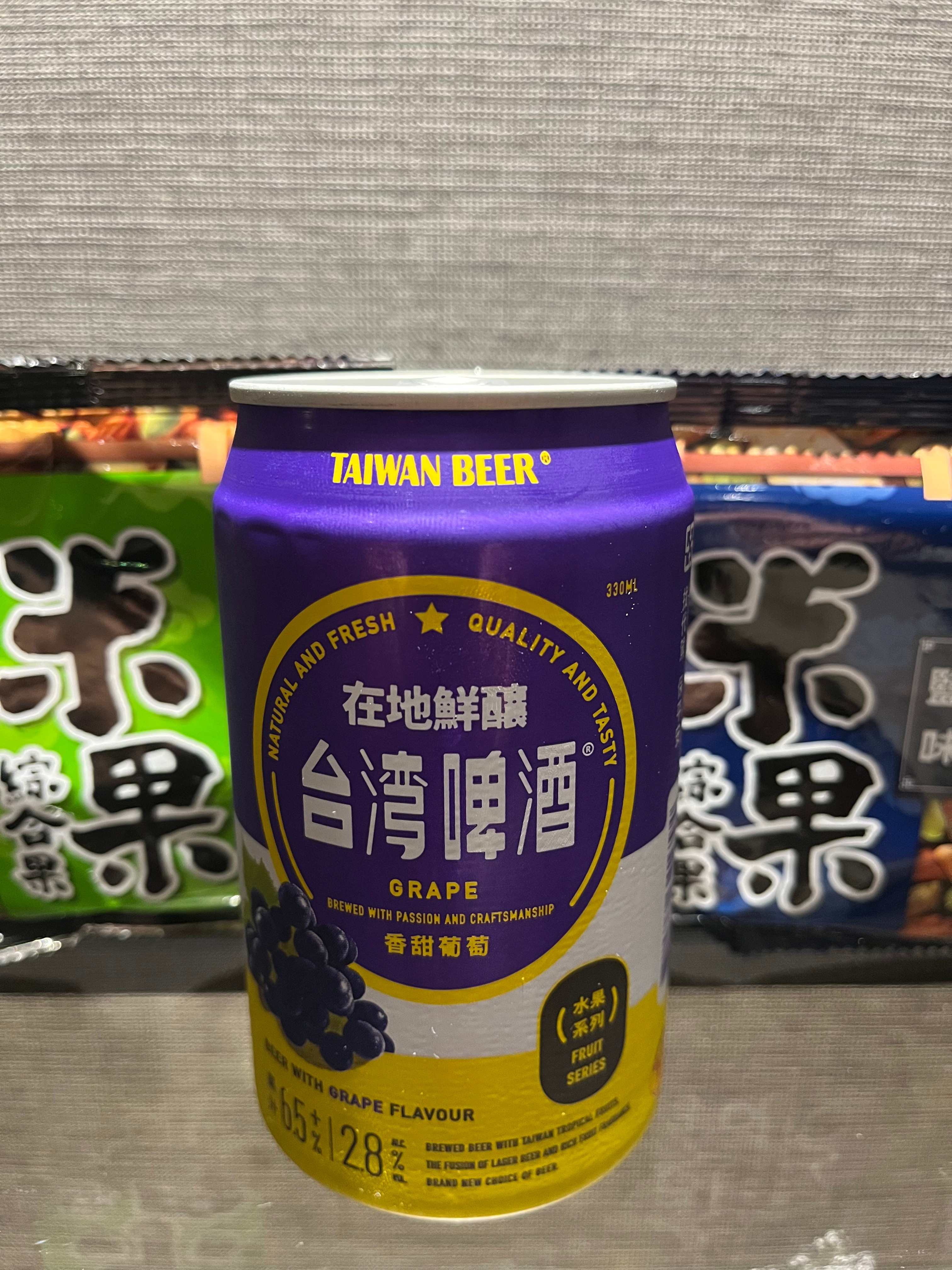 | Taiwan Beer Fruit Series – Grape, 2.8% (Taiwan Tobacco & Liquor Corporation) It’s quite sweet, and it’s nice and refreshing in the way that diet Lucozade is i.e not at all unless you’ve spent a week in a desert eating sand. That it’s slightly less terrible than the pineapple one is the biggest compliment I can give it. There were other fruit flavours in this line to try, but I just couldn’t do it. It’s 2.8%, so it’s basically a shandy. I wouldn’t even serve this to a bunch of 16 year olds that I didn’t like. 1.5/10 | ![]() |
