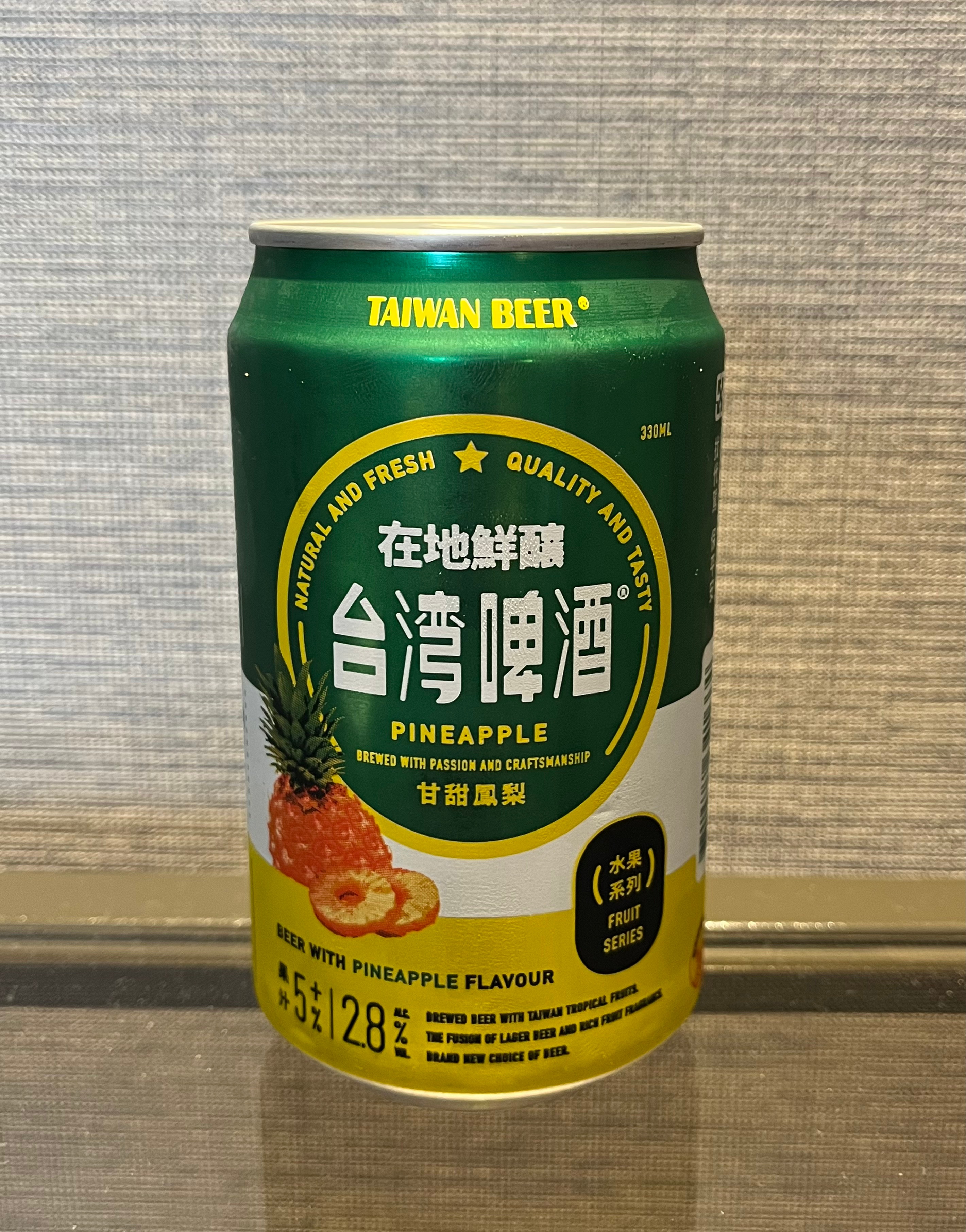 | Taiwan Beer Fruit Series – Pineapple: Fruit Beer, 2.8% (Taiwan Tobacco & Liquor Corporation) It contains “real fresh pineapple juice,” allegedly, but there is nothing fresh-tasting about it. It apparently also contains “pineapple flavouring,” but I’m dubious about that as well. Possibly it contains the urine of somebody who ate pineapple in the recent past, because it tastes about as nice. Actively offensive. 0.2/10 | ![]() |