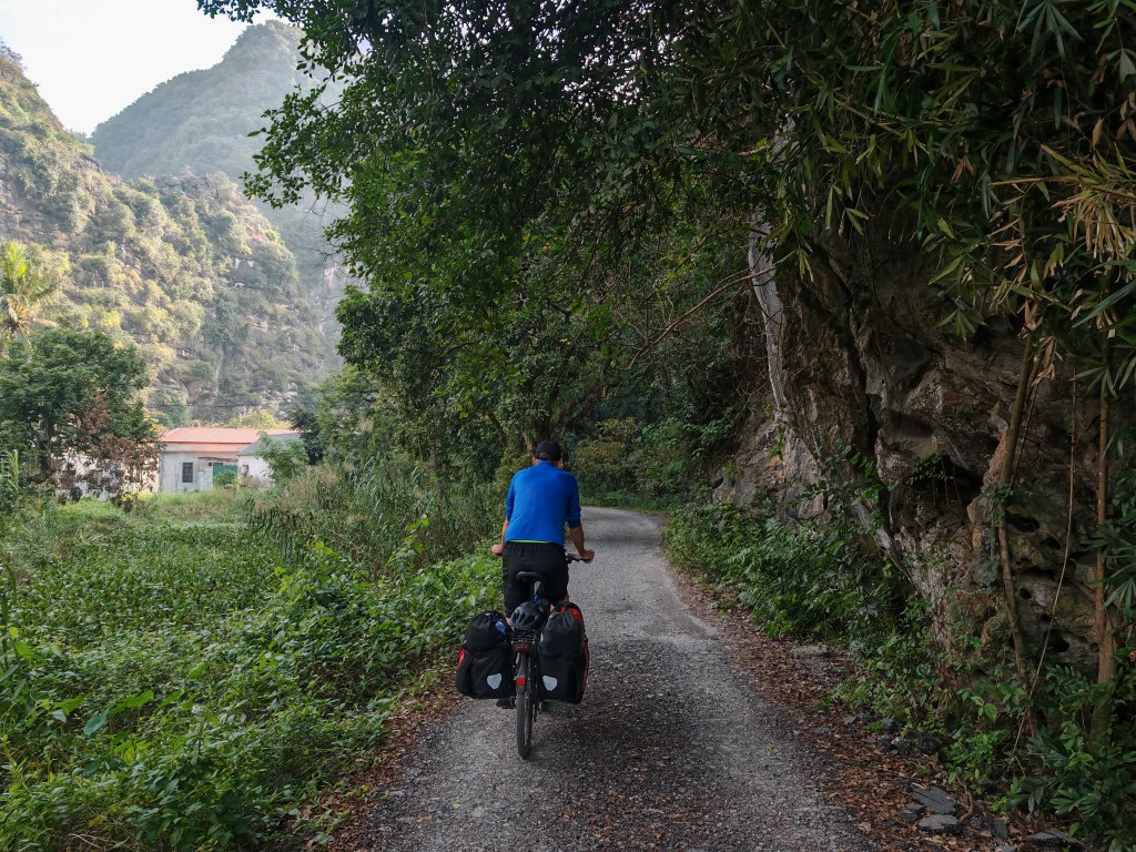 The homestay is a little haven. We manage to find a covered spot to wipe the bags down, but we still turn up like drowned rats. The serene homestay is set right on the beautiful river, with incredible views and limestone cliffs and caves right on our doorstep. The food they cook in the evening is amazing; some of the best we’ve had. We find a little place down the road to eat lunches and we plan to do some cycling around the area, so we have everything we need. I’ve caught a cold and we have to find a more permanent solution for my saddle, so we extend our stay.