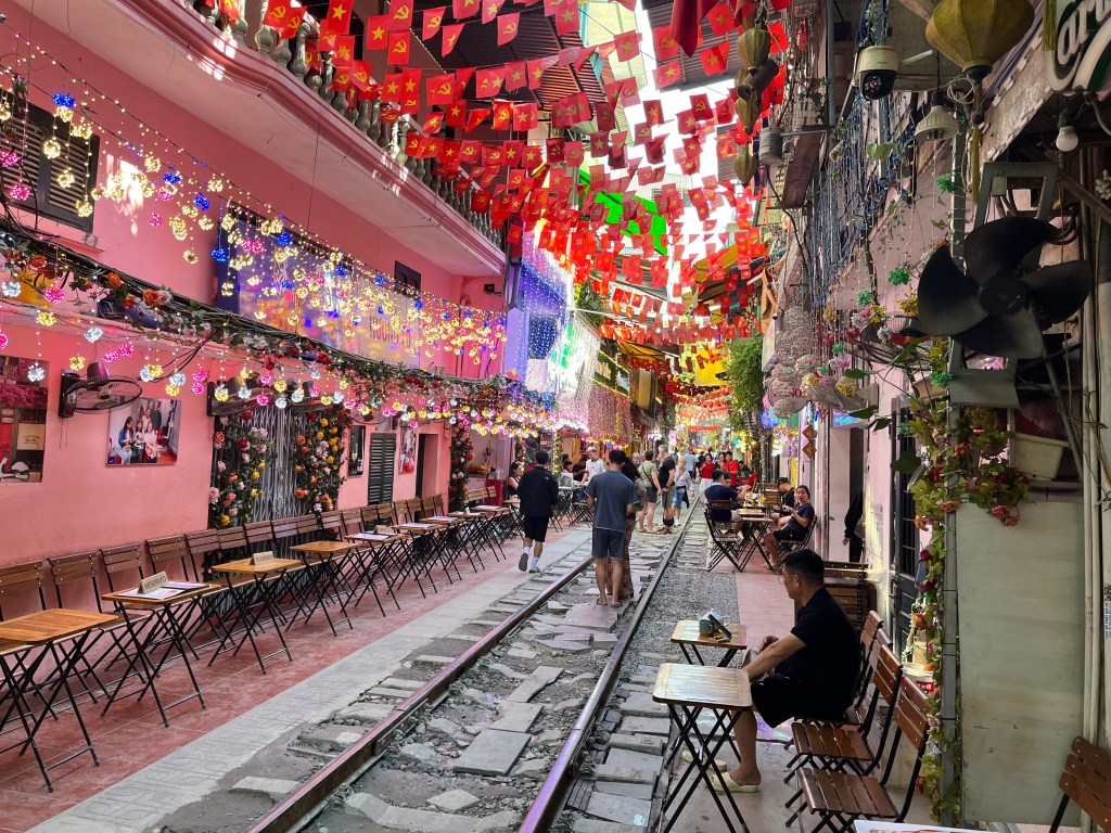 One tourist spot is still on the agenda. Richard is very keen to see Train Street, where the track runs precariously close to the cafes either side. We get there well ahead of time and settle in with some expensive coffee. The experience is actually worth it and we can leave the city with that. Otherwise it’s been a place neither of us cared for at all.