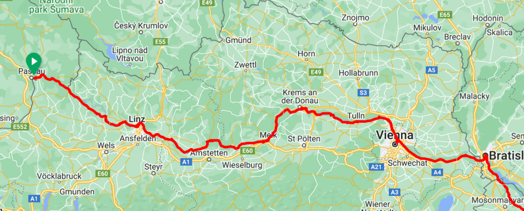 The ride from Vienna to Bratislava is nicely paved and well signposted. Bratislava itself is small for a capital city, and easy to navigate. We criss-crossed a bit between Hungary and Slovakia until we turned fully South at Komarno. The Slovakian side has better surfaces and less traffic.