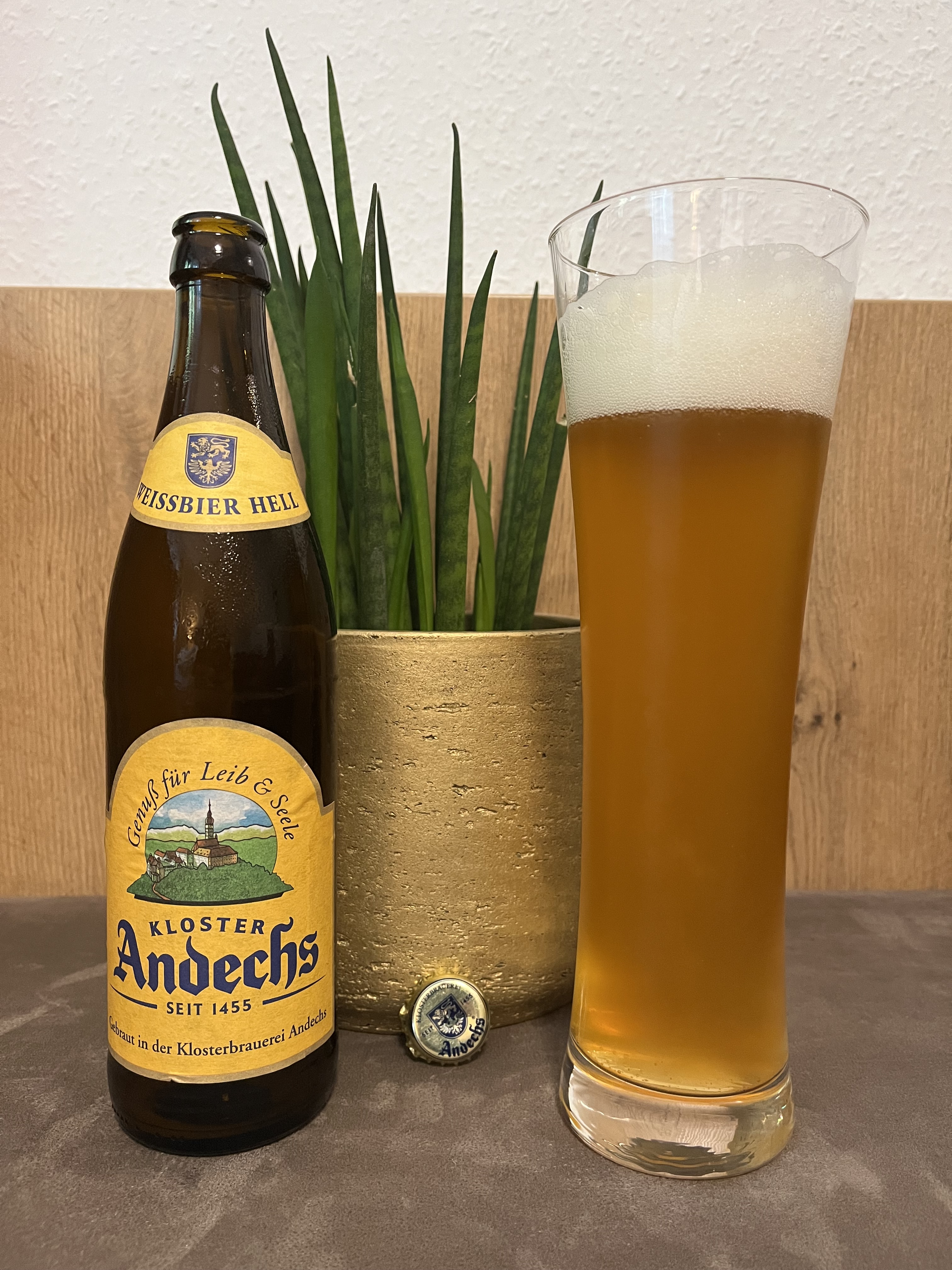 | Kloster Andechs Weissbeir Hell: German Hefeweizen, 5.5% (Klosterbrauerei Andechs) Big banana punch, with a background of honeydew melon, apple and orange. Spicy with cloves and nutmeg. A touch of vanilla and light honey. Very slight hop bitterness. Soft and creamy body, buttery mouthfeel. Great wheat beer. 9/10 | ![]() |