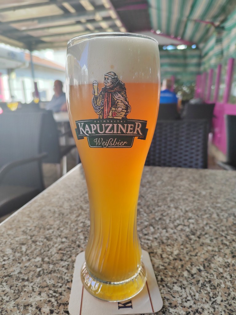 | Kapuziner Weissbier: German Wheat Beer (Hefeweizen) 5.4% (Kulmbacher Brauerei) Slightly offbeat wheat beer, thanks to being a bit floral and grassy. It also has a slight initial taste of bubblegum, along with the usual banana/clove/citrus. It’s quite creamy, but with a faint bitterness. 8.5/10 | ![]() |