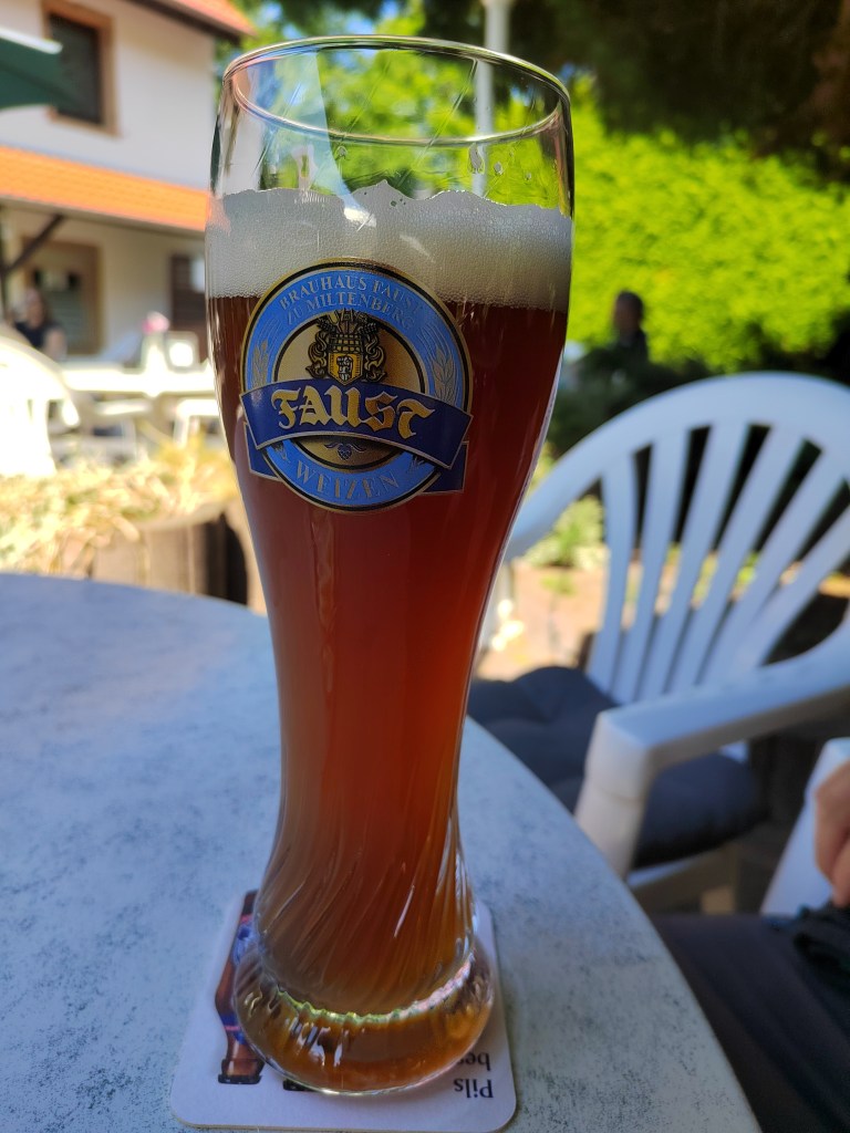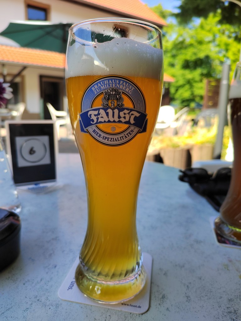 | Faust Weizen Helle: German Wheat Beer (Hefeweizen) 4.9% (Brauhaus Faust-Miltenberger) This one has hints of cider and caramel, and is heavy on the bananas. Faint dough flavour, some grass and pears. Quite spicy. Surprisingly full bodied for the abv. 8/10 | ![]() |