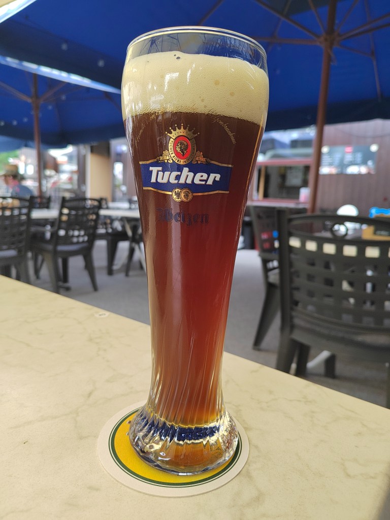 | Tucher Weissbier: German Wheat Beer (Hefeweizen) 5,4% (Brauerei Tucher Brau) More orange than usual. A touch of pepper and coriander, although not too herby. Quite light and creamy. It’s not very complex, but is a good hot day wheat beer. 7.5% | ![]() |