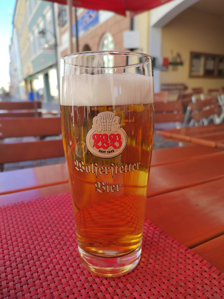| Wolferstetter Edel Hell: German Helles 4.9% (Brauerei Wolfersftetter Georg Huber) Very mineral-ly, with lots of corn. Quite dark to look at but light in taste. A bit of a soapy aftertaste. 5/10 | ![]() |