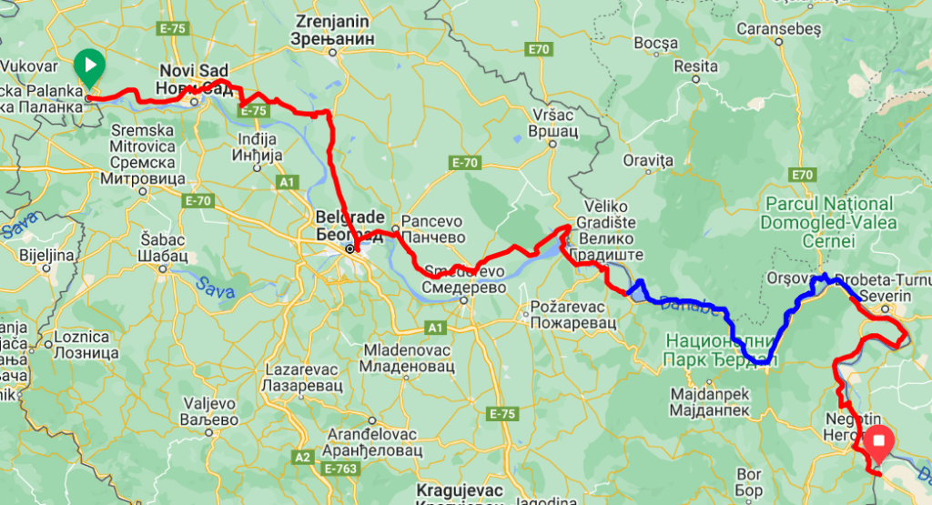 We elected to follow roads the rest of the way rather than the longer tracks of the official cycling routes, apart from the river track which leads to the ferry crossing between Stara Palanka and Ram. The ferry cost 500 dinars for 1 person with 1 bike, which is insanely expensive and caught us out. It’s unavoidable though if you want to stay in Serbia at this point.